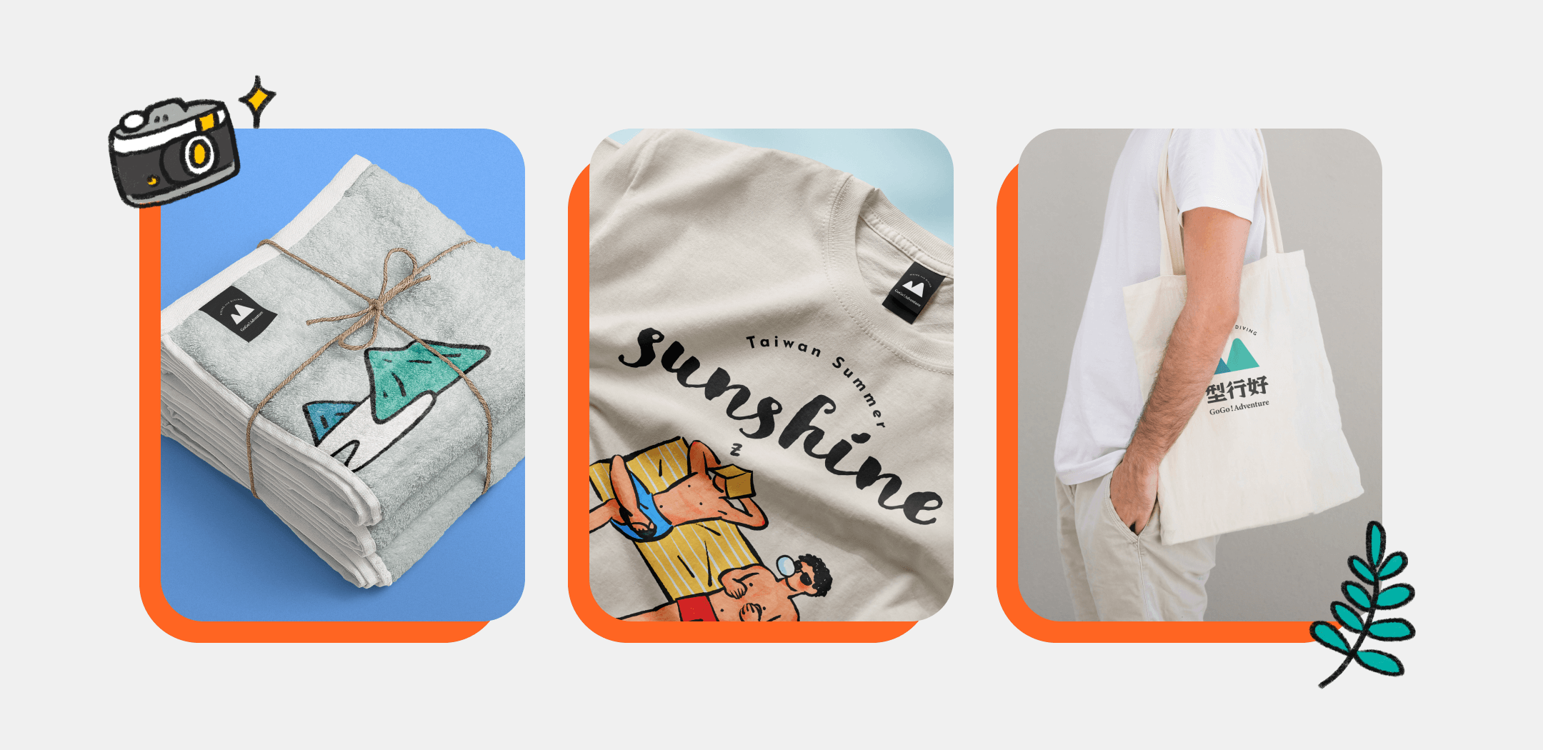 GoGo! Adventure is my personal travel blog, documenting every visit and focusing on hiking and water activities. I share the beautiful moments and experiences from my travels!In the brand image, I use vibrant complementary colors, orange and blue, to infuse the brand with energy and contrast. The visual design features cartoon hand-drawn illustrations, which not only add fun and charm to the brand but also make the website interface more distinctive and attractive.Additionally, I extend these unique illustrations and brand identity to various products, such as clothing, backpacks, towels, and other outdoor apparel. Through these products, we hope to bring the joy of travel to more people and incorporate that happiness into their daily lives.
